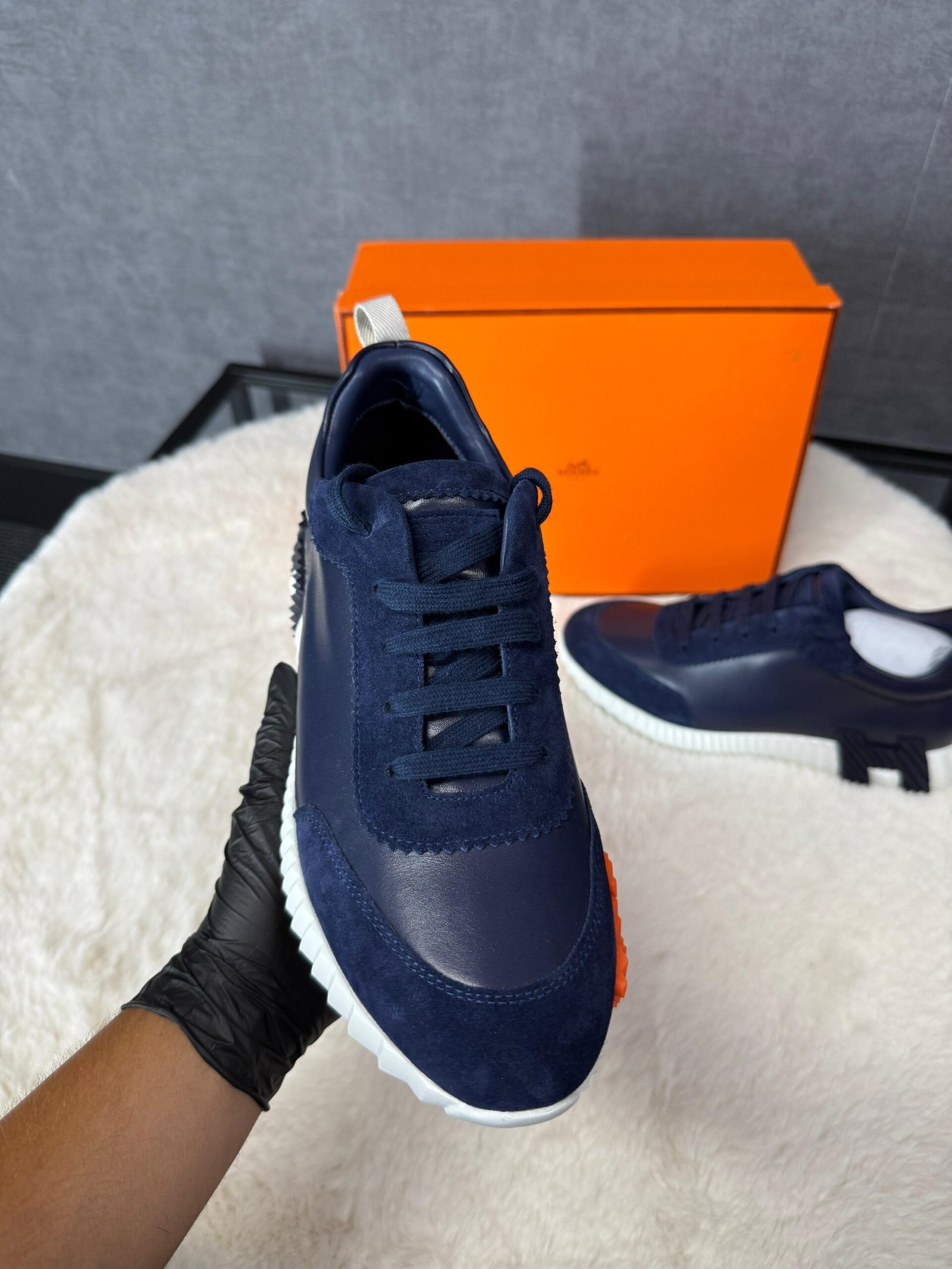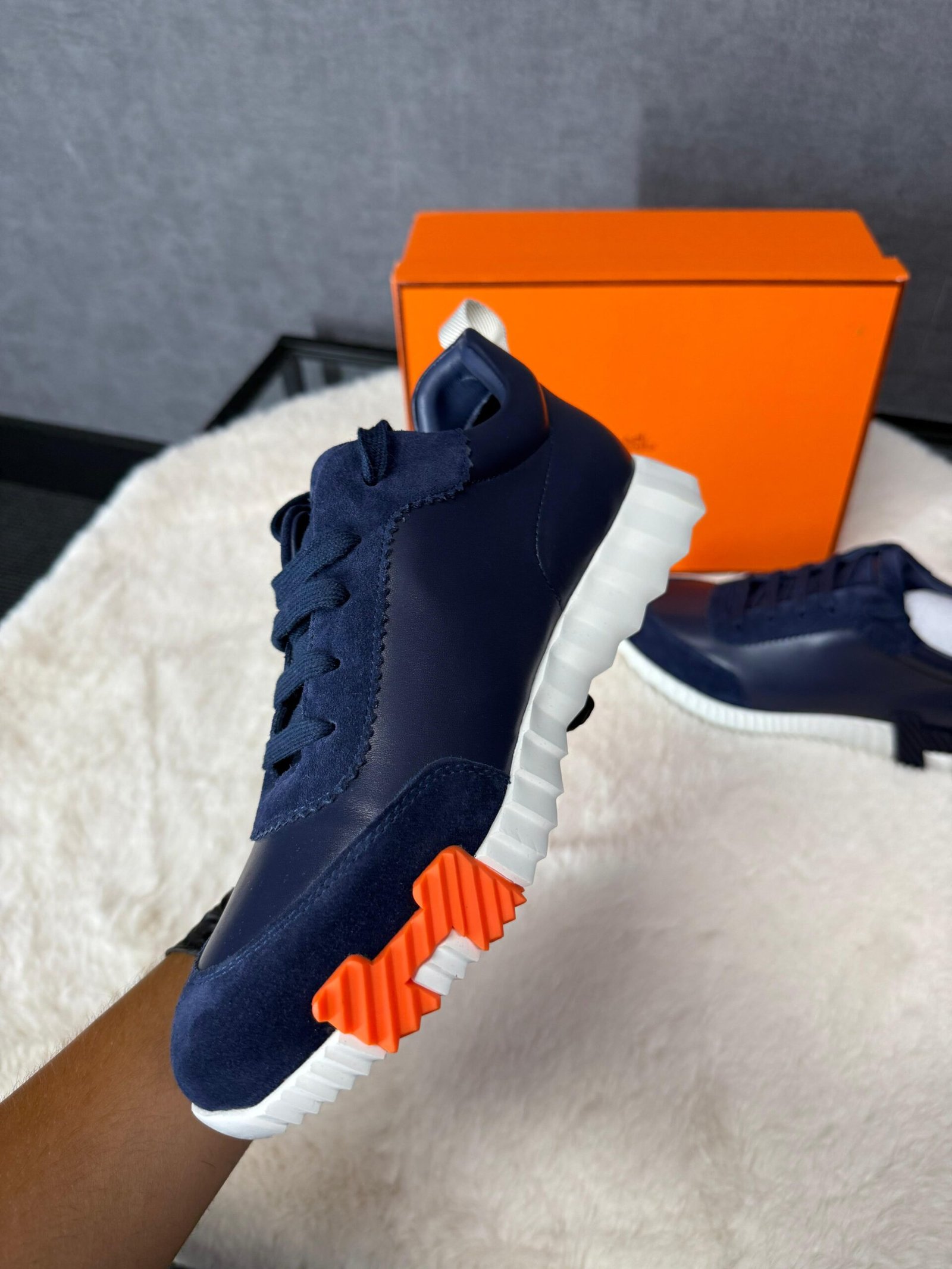 Hermes Bouncing Sneakers Dark Blue, Orange Logo